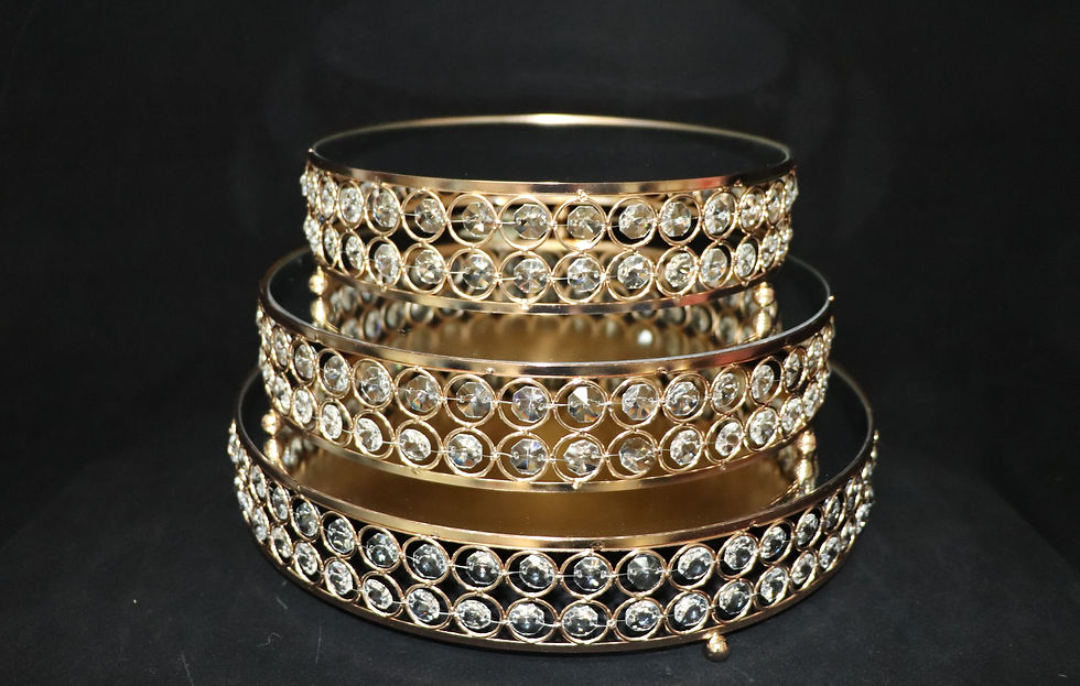 Crystal Beaded & Metal Cake Stand 3pc/Set
